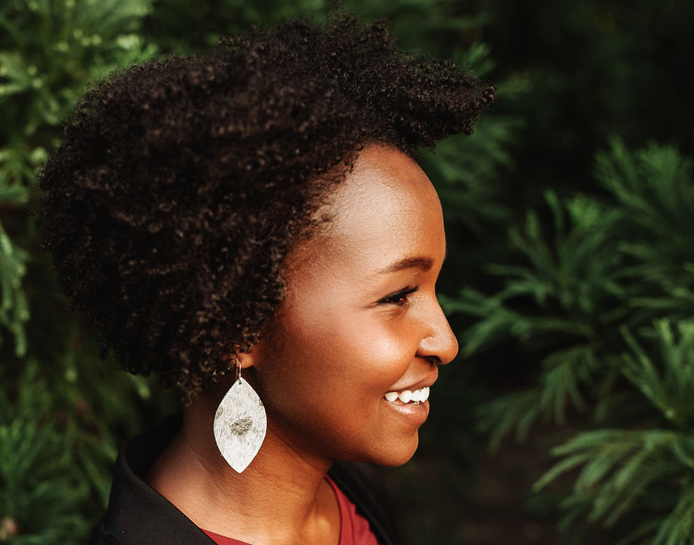 A pop of silver is all you need when wearing these earrings. Perfect for dressing up or down, you'll want to wear them everyday. Each pair of earrings is unique therefore the texture of the leather will vary slightly.